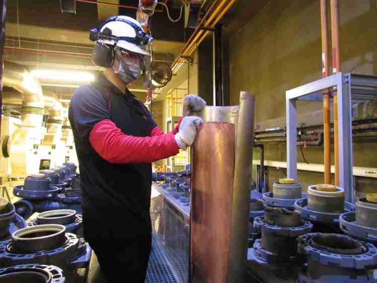 彩神vll将废弃物转化成有效的工业或民生原物料,,,图为废铜液淬炼后再制成纯度极高的铜管